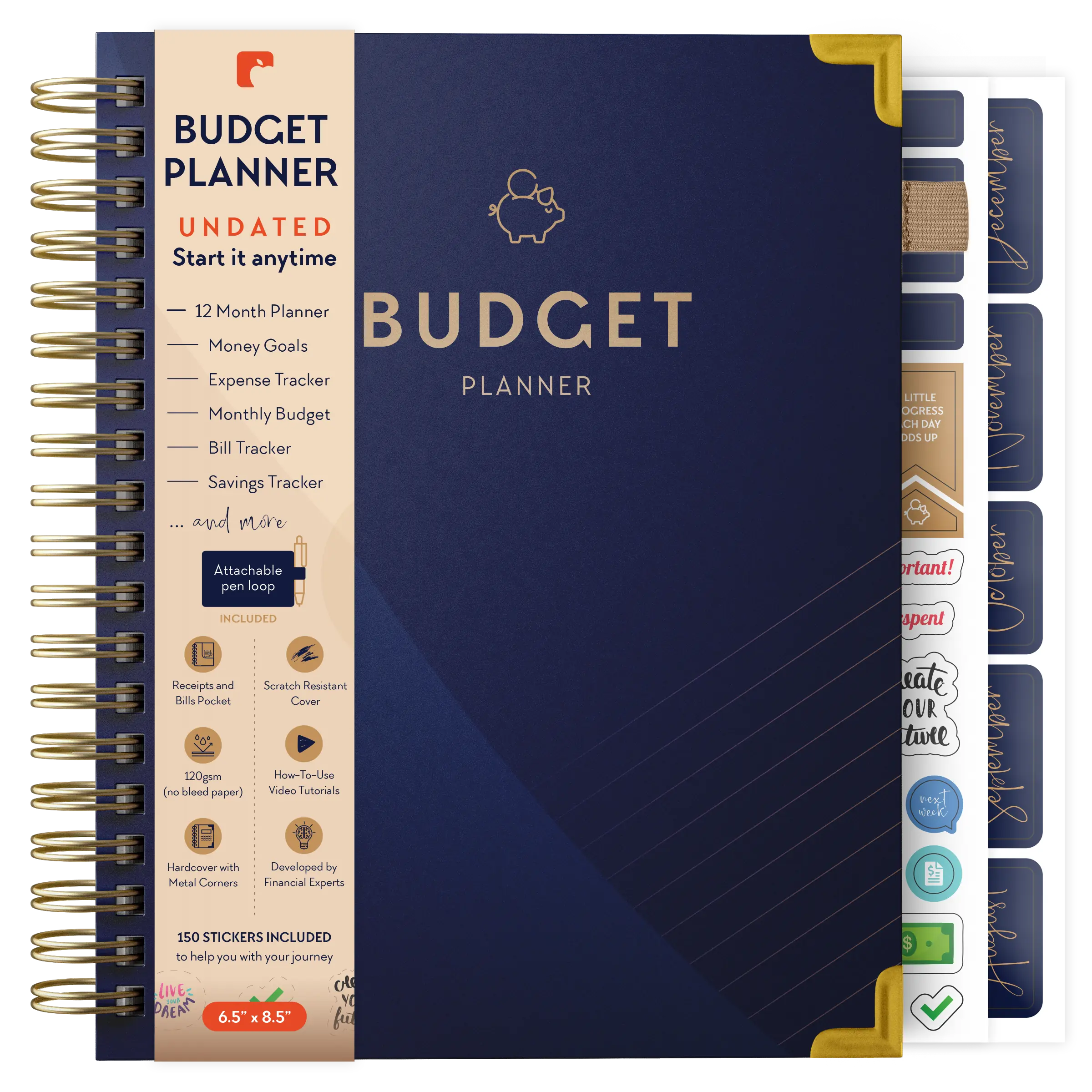 | Features | Includes pocket for invoices and bills Portable size to easily fit in your bag Undated so you can start at any time Scratch Resistant Cover Attachable Pen Loop Included |